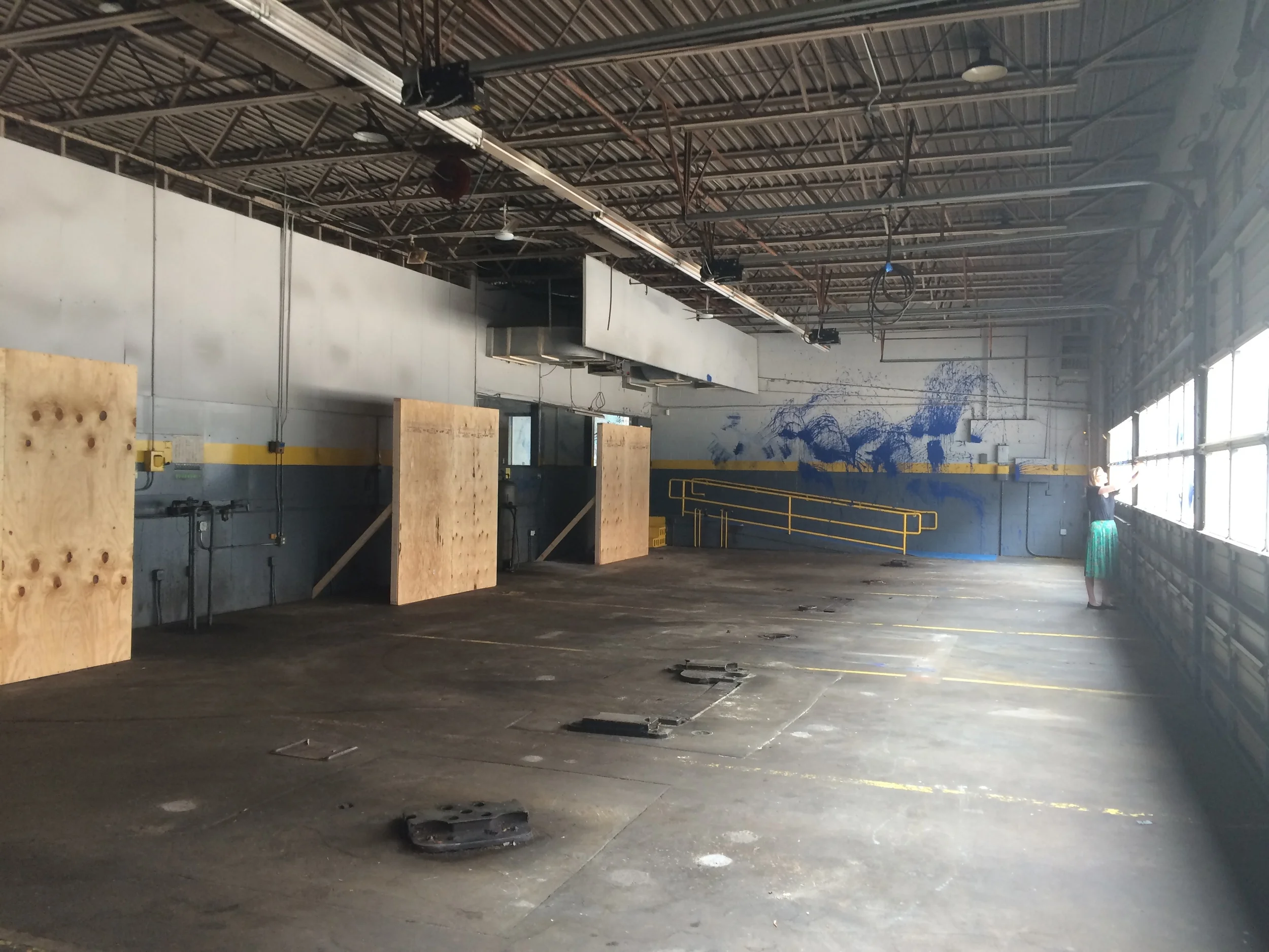 Key in hand, last week i spent my first day with the space. Memories of sneaking into foreclosed spaces sent me back to a 15-year-old me. The experience was equal parts “how great it was to be a kid” and “how great it can be to be an adult.” I sat in the 100 degree heat, highlighting the smell of decades of rubber and oil, listening to the space, and exploring its potential.